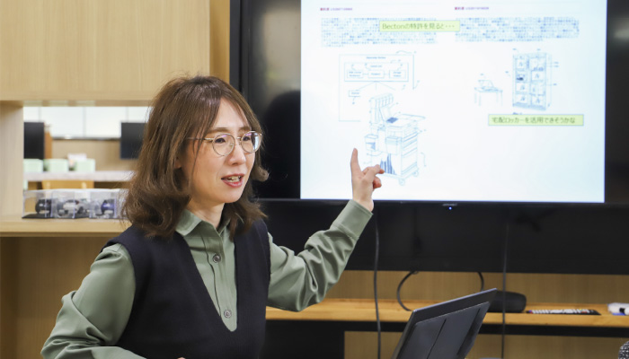 私が所属する知的財産部は、約40名の部署です。技術系と事務系の社員が協力しながら、「既存領域の深化」と「新規領域への進化」の両利きの経営をめざし、活動しています。企業価値向上につながるよう、戦略的な知的財産の創出・保護・活用により既存事業領域を深化させることが、私のミッションです。発明者の苦労を知財面での保護活用に昇華できた時に大きなやりがいを感じます。