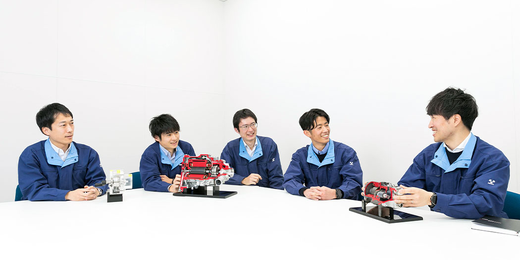 「私もさまざまな製品を設計できるエンジニアになることを目指していきます。その一環で、現在は水素循環ポンプのチームからエアコンプレッサーのチームに移り、次のプロジェクトを進めています。社内にはさまざまな分野のスペシャリストがいるので、そういった方々と連携して多くの知識・技術を吸収しながら一人前の技術者になっていきたいと考えています」(篠田)