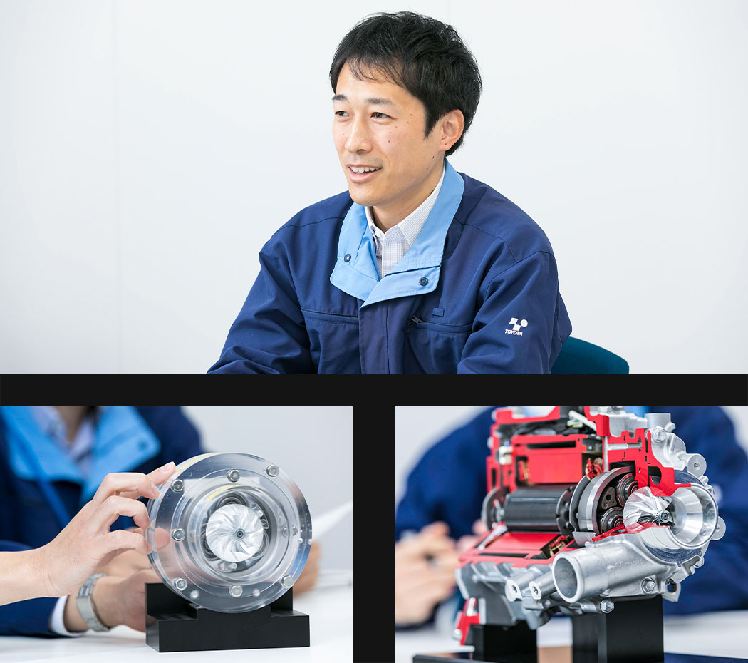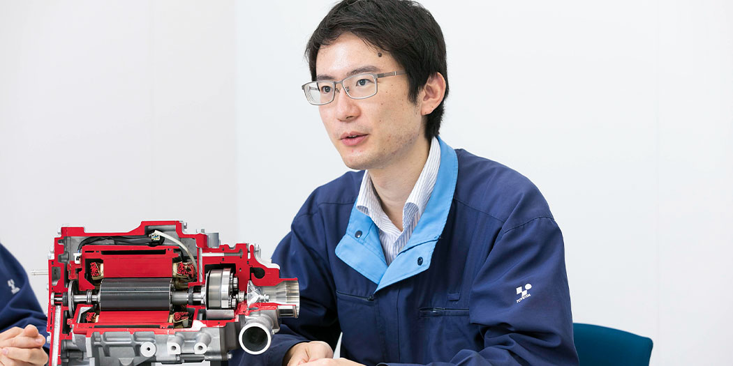 「例えばインペラーという部品を設計する際は、エンジン事業部のターボチャージャーを開発している設計者からアドバイスをもらいました。素材についても技術・開発本部に材料開発専門のグループがあるのでその部署の協力を得ました。こうして加工コスト低減とワイドレンジな運転が可能なインペラーを新たに開発することができたのです。私たちコンプレッサー事業だけでなく、豊田自動織機全体がチームワークを発揮して開発した製品だと感じています」(伊藤)