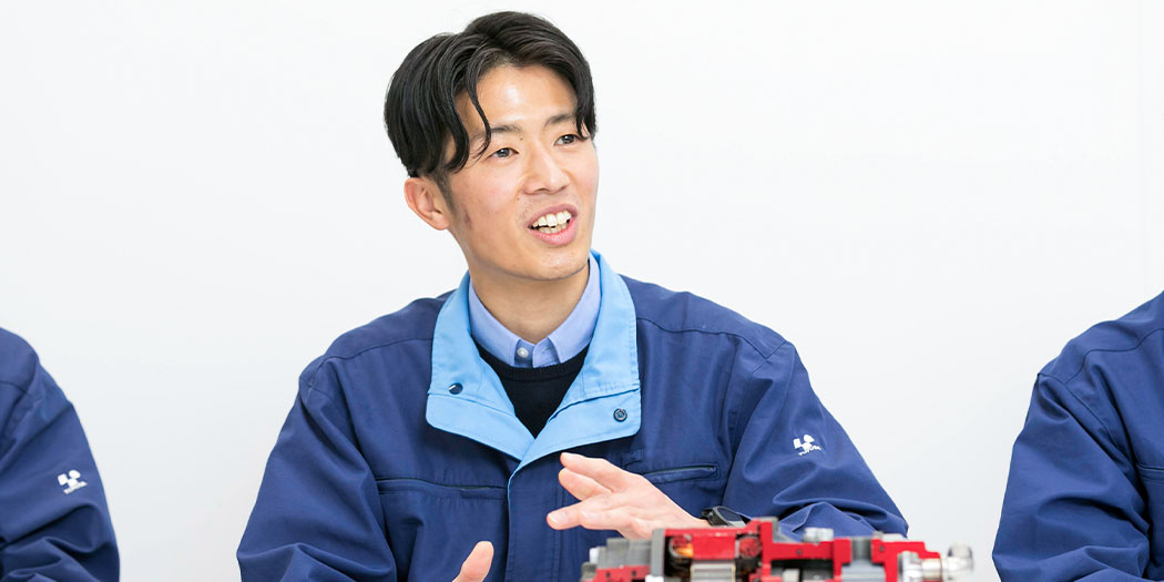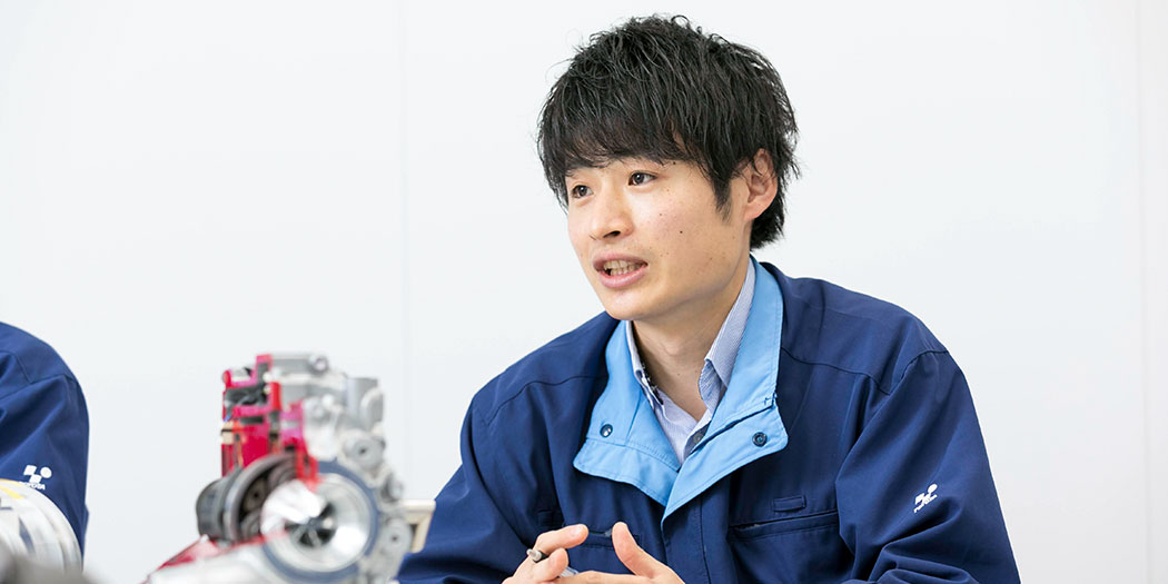 「目標とする流量・圧力が数値で定められていたので『やりがいがあって面白そうだな』と感じたのが第一印象でした。配属されたばかりでハードルが高いのかどうかもよく分からなかったんです。目標数値を達成するのがいかに大変かは、その後、身に染みて感じました(笑)。でも、最先端のプロジェクトに若手がいきなり携われることは、豊田自動織機の大きな魅力の一つだと実感しています」(伊藤)